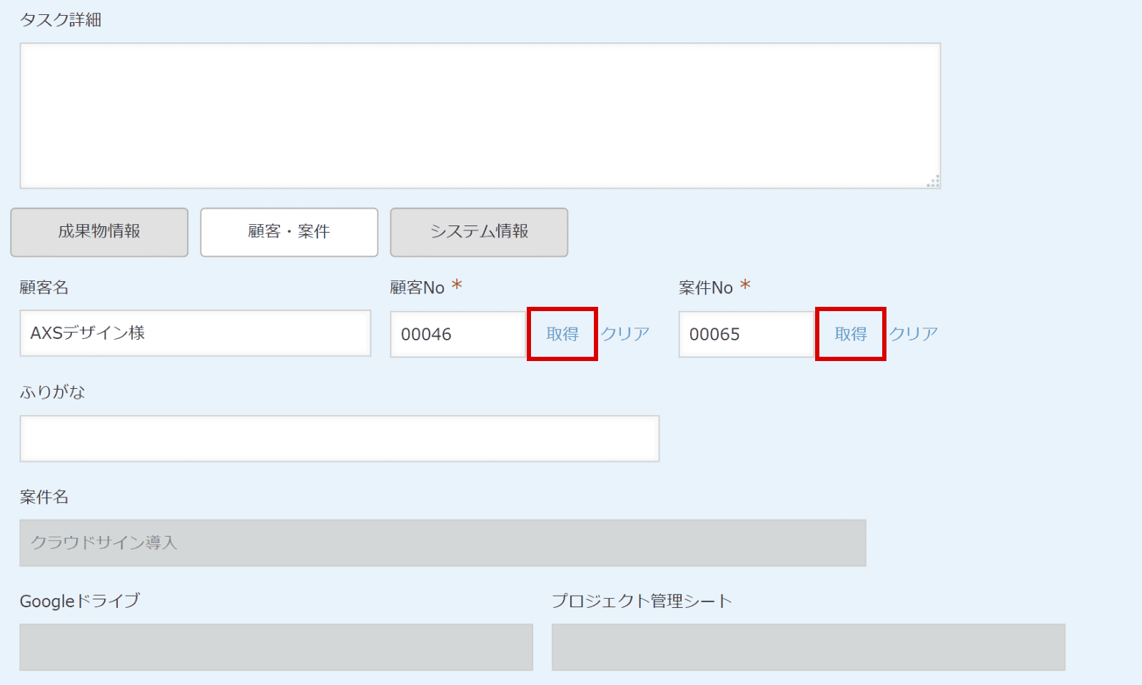 「取得」ボタンをクリック(タブで隠れている場合も)